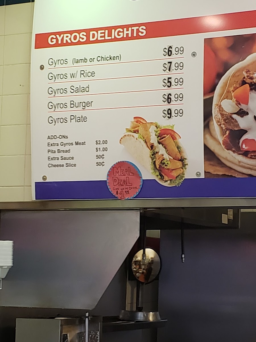From a reviewer’s perspective, the menu at Gyro Express - 122 W Towne Mall feels like a well-rounded conclusion to a flavorful Mediterranean-meets-American dining experience. The restaurant offers impressive variety, making it easy for different tastes to meet at one table. Starting with customizable options like Extra Meat, Extra Sauce, Extra Pita, Cheese, and Feta Cheese, guests can easily tailor their meals. Seafood lovers will appreciate the hearty Catfish Fillet w/ Fries and Fish Combo w/ Fries, while vegetarians are well taken care of with comforting choices such as Falafel, Hummus & Pita, Veggie Plate, and Grape Leaves.