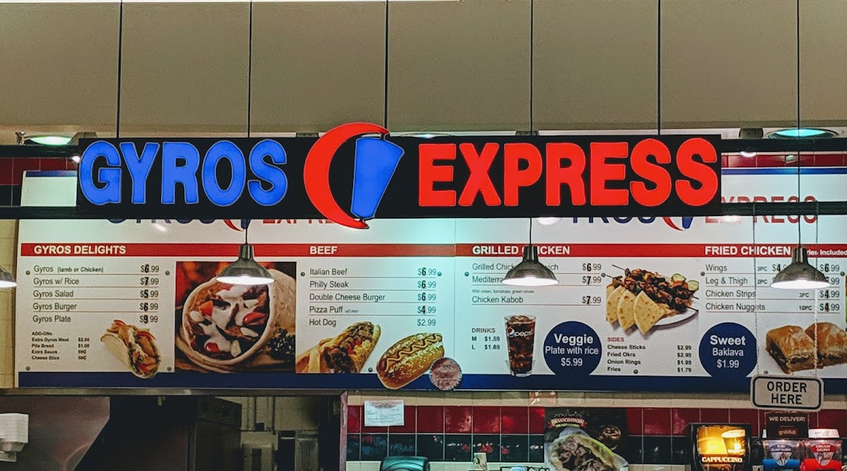 Grilled options such as Mediterranean Chicken, Grilled Chicken Sandwich, and Chicken Kabob offer lighter yet satisfying alternatives. Finally, the heart of the menu shines through in the Gyro selections, including Gyro Lamb, Gyro w/ Rice, Gyros Salad, Gyros Burger, and Gyro Platter, which truly define Gyro Express’s identity. Overall, the menu successfully brings together bold Mediterranean flavors and familiar comfort foods, making it a versatile and dependable choice for casual dining in Madison.